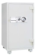 D122はダイヤルを回して番号を合わせて開ける操作の安全性と信頼性の高い1時間耐火の業務用金庫です。
