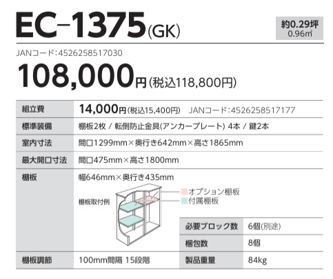 | ■付属品 | 棚板×2、鍵×2、アンカープレート |