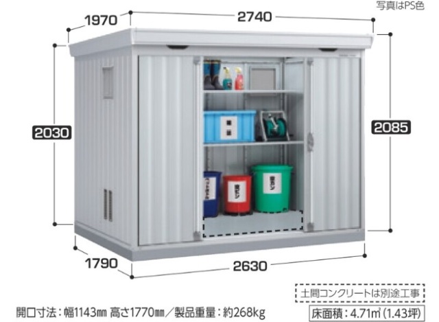 | ■外寸 | 間口2630×奥行1790×高さ2085(2030)mm |