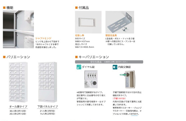 | ■性能 | ダイヤル錠タイプ、本体:スチール、粉体塗装、本体色:ホワイトグレー |
