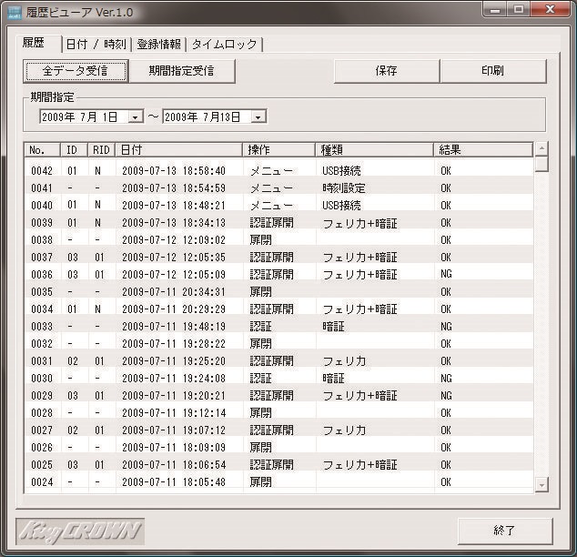 日本アイ・エス・ケイ(King CROWN) オプション 履歴閲覧ソフト(指紋認証式用) RSF-20