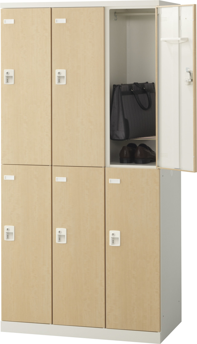 SLBL-6-S2 (シリンダー錠・扉色 ナチュラル) SEIKO FAMILY 生興 6人用ロッカー 幅900×奥行515×高さ1800mm