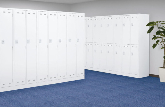 SLDW-2S-Dは、オフィス定番のホワイトカラーの更衣ロッカーです。扉はSIAA認証の抗菌塗装です。