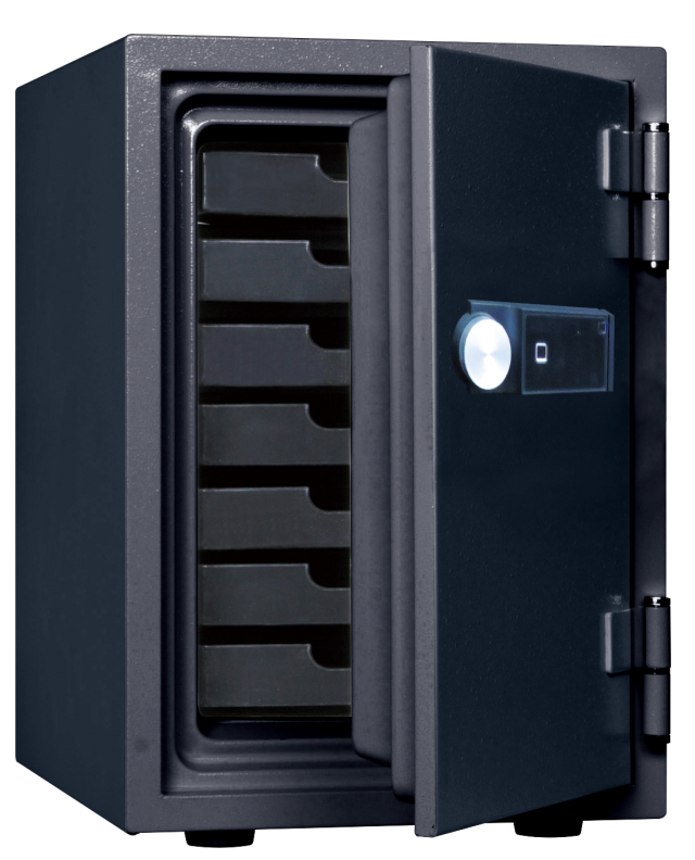 ■メーカー:ダイヤセーフSP52-8は登録した指紋、もしくは登録した暗証番号どちらかで開錠できる指紋認証式の1時間耐火金庫です。